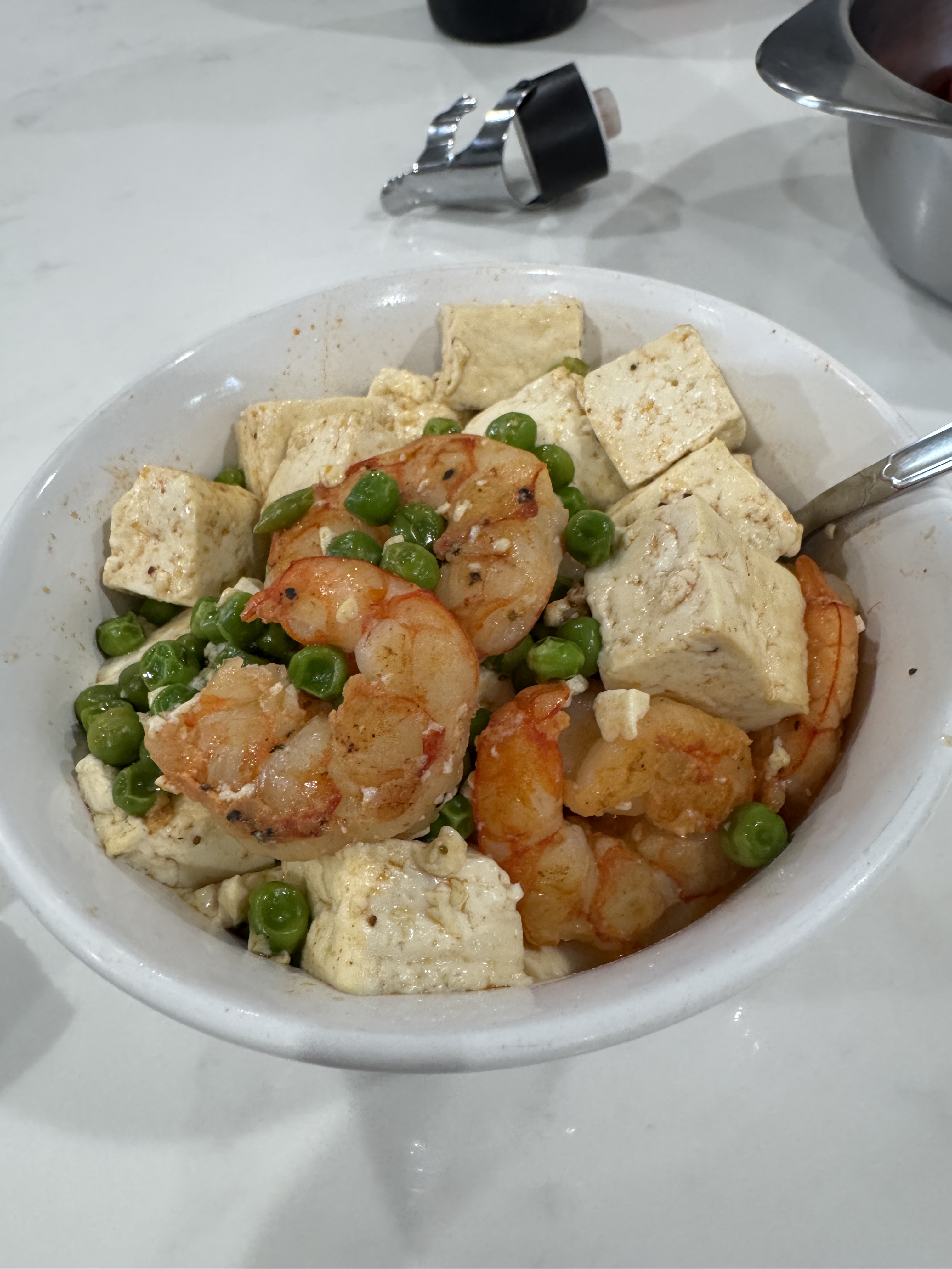 Since I’m trying to eat more protein recently to build muscle, one of the constant struggles is how do you accomplish more protein without an accompanying burst of additional calories. This dish has become a reliable stand by because it’s tasty, easy to prepare, and packed with protein without breaking the bank on calories.