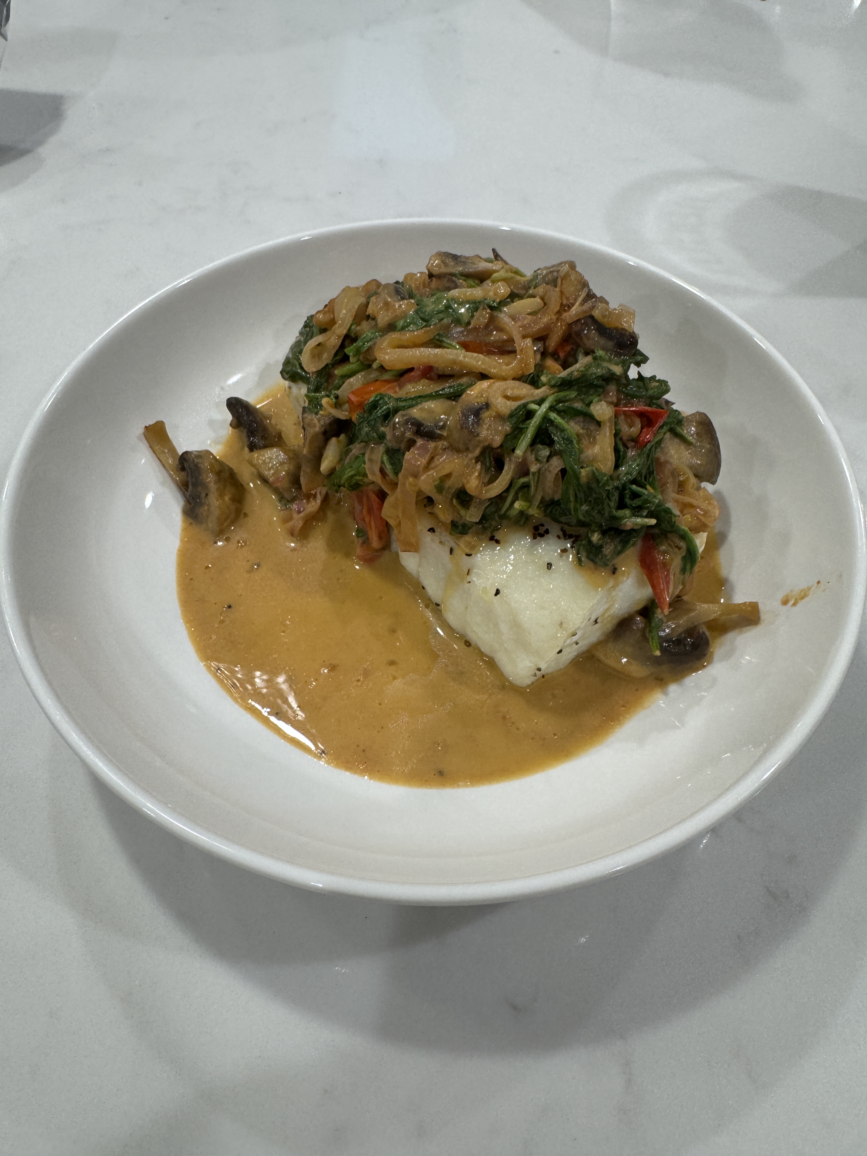 - (Note: I cook the fish and sauce in parallel because they can both be ready at the same time. But you could also do them one at a time. In that case, I would do the fish first, and then the sauce last).
