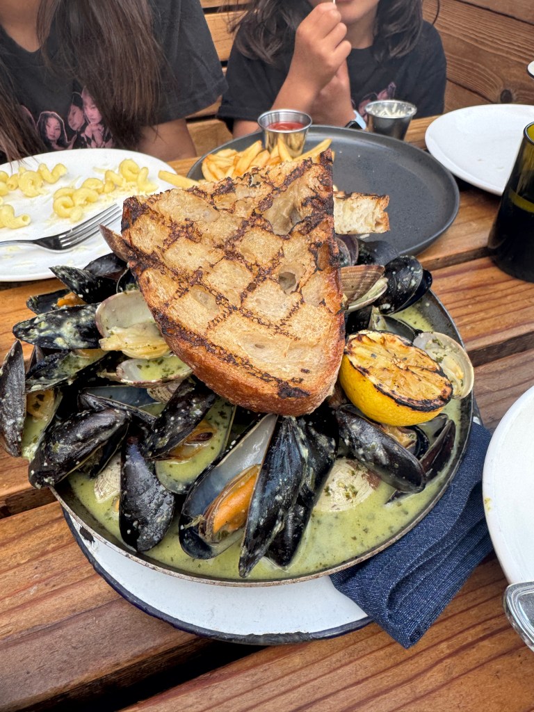 Ok, the food. I will admit, I didn’t look at the menu closely enough when booking the restaurant. I booked this place because of Brooke’s name, and because it was relatively close to SoFi, where our concert was. But after actually studying the menu, I was blown away. Every item seemed to have some delightfully quirky ingredient that didn’t belong. The ceviche has mango and yuzu? Well, I could taste both the mango and the yuzu. The steamed mussels is in a cashew and serrano sauce? Yep, it’s extremely rich and the perfect amount of spicy. The sunchoke tostones has something called an ahi amarillo crema? I didn’t even know what that was, but it turned out to be the star of the dish (I later learned it’s a Peruvian condiment made with Feta cheese).
