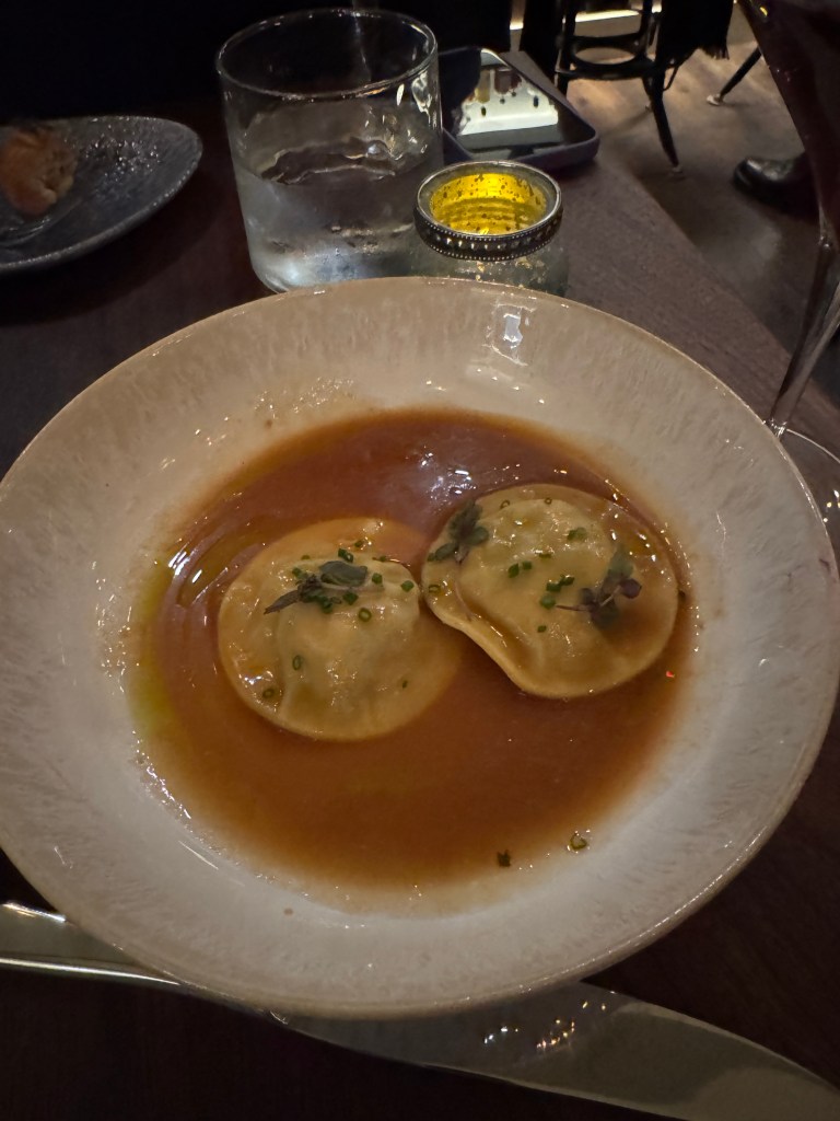 For the ravioli, there was an entire shrimp inside with some ponzu sauce. Again, it kind of just felt like eating two items that didn’t belong together in one bite. The shrimp was good, but I felt it would’ve been better on its own, and I didn’t feel like it belonged well with the ravioli (which was also well made).